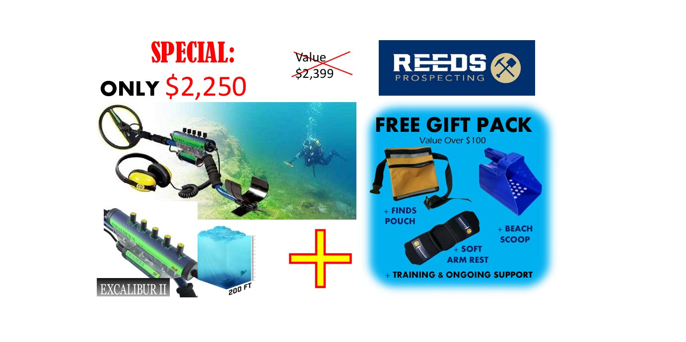 The World’s Best Water Detector! Minelab’s unique Broad Band Spectrum (BBS) technology, combined with superior ground rejecting technology, makes the Excalibur II the ideal underwater machine. The design of the Minelab Excalibur II allows you to use it as effectively in or out of the water - this amphibious machine can move seamlessly from land, beach and wet sand conditions to underwater.