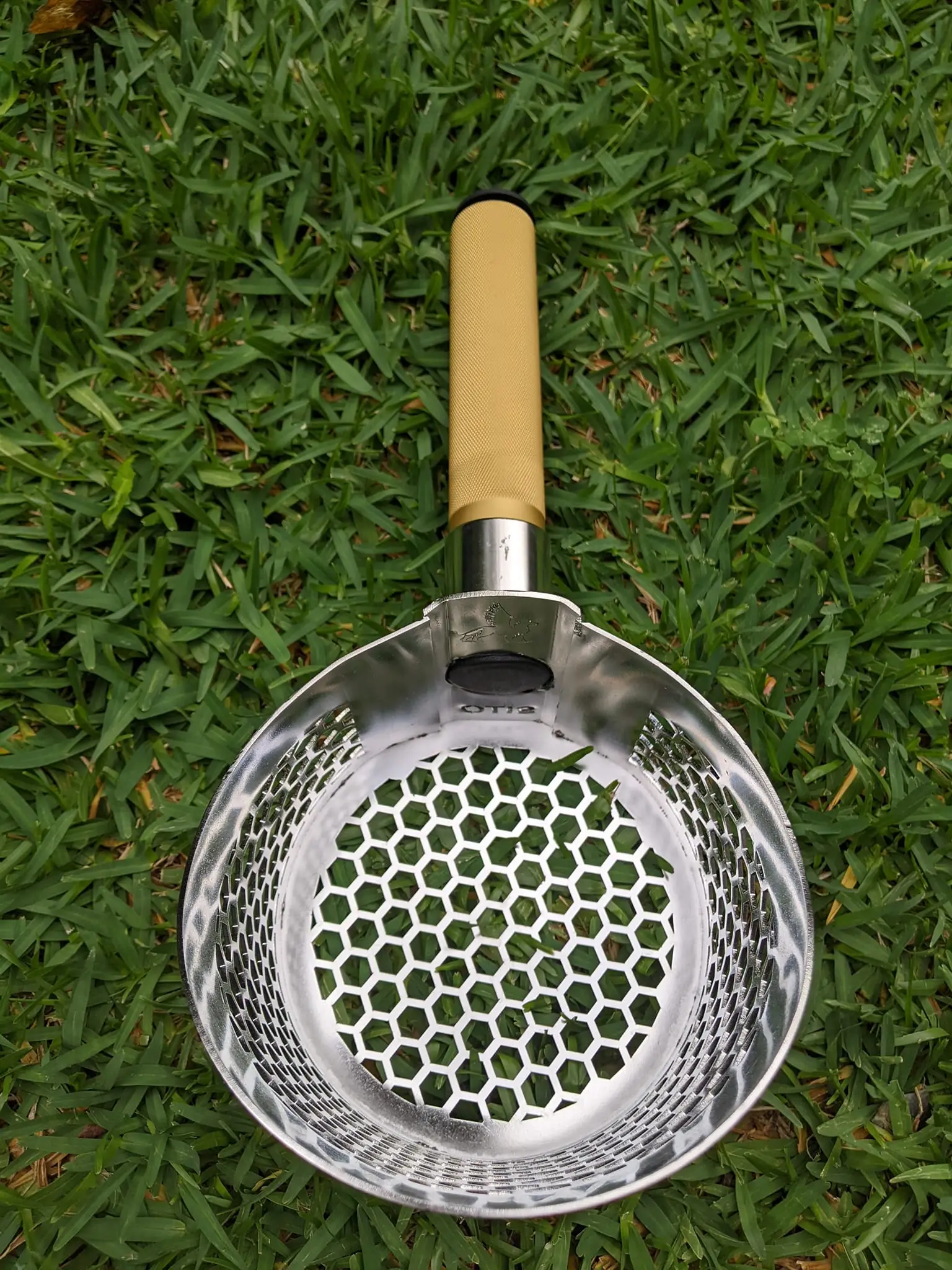 With hexagonal-shaped holes, our scoop has an edge over traditional square-mesh construction. Each hole is laser-cut at 7/16″ – so it’s the perfect size for smaller rings and jewelry that other scoops tend to lose, but offers enough surface area to allow wet sand to fall through with a good shake.